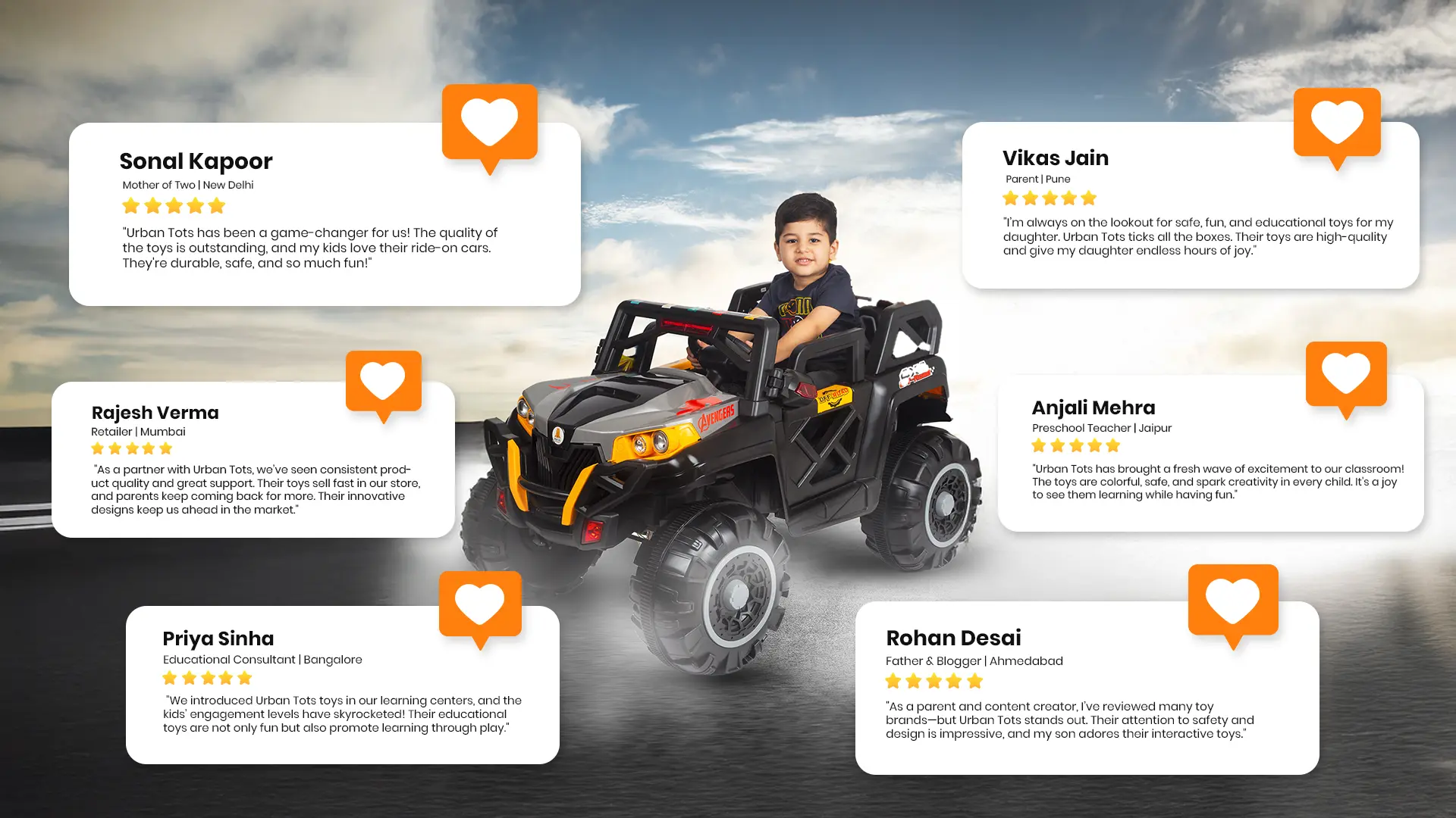 At Urban Tots, each toy is a blend of quality, safety, and creativity, made with care in India. From battery-operated cars to interactive learning toys, our range is crafted to engage curious minds and active play.
